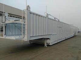 The trailer features an innovative dual-layer design, allowing vehicles to be loaded on two levels. The height of each layer is fully adjustable, providing greater flexibility and optimizing the space for loading commercial vehicles. This ensures a more efficient and organized arrangement, catering to various vehicle sizes and types.